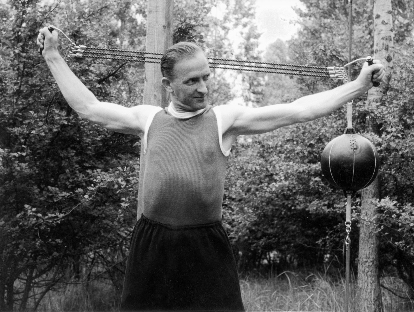 Bild: Wilhelm Herz beim Fitnesstraining (1949).