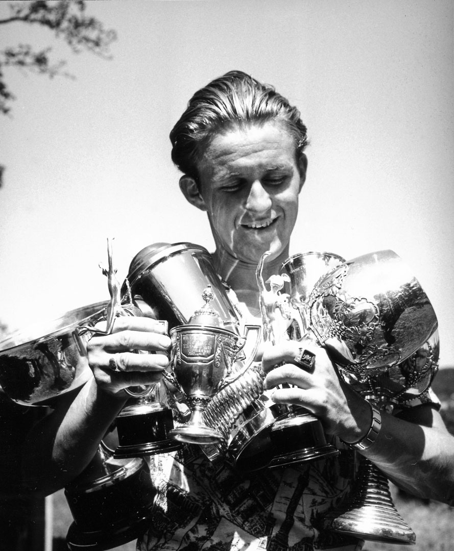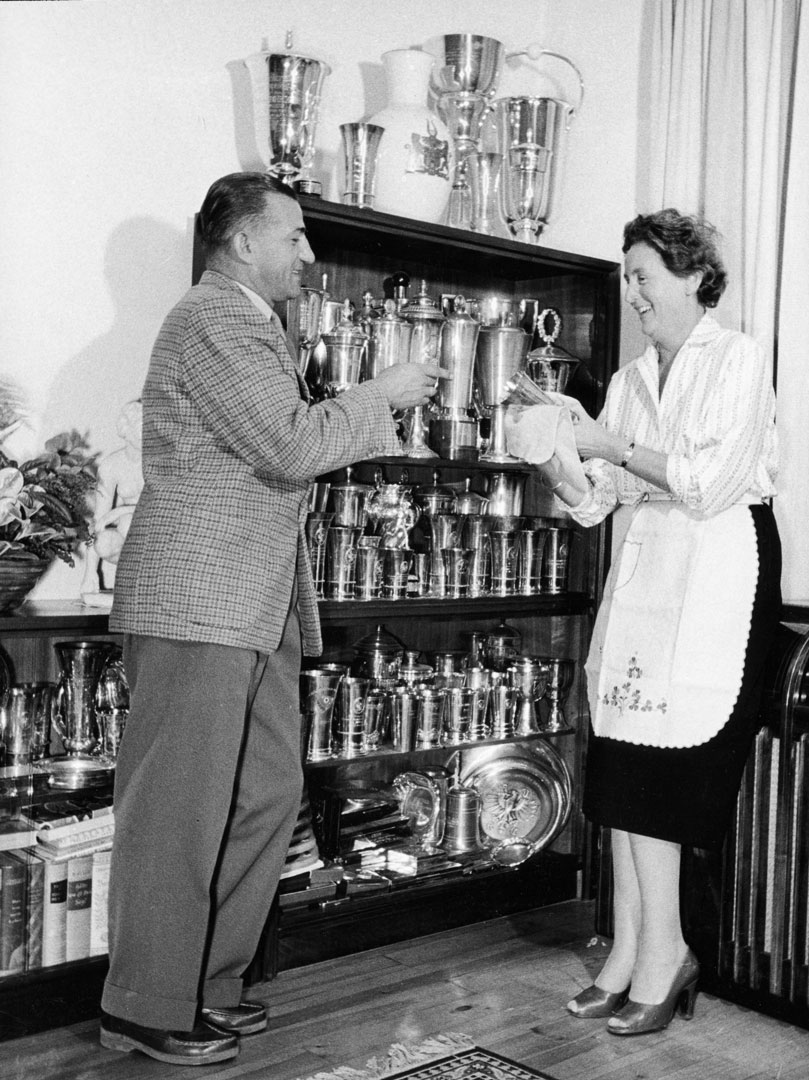 Bild: Rupert Hollaus mit seinen Trophäen (1954).
